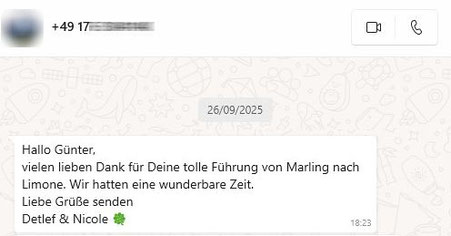Mit Engagement, Flexibilität hat Herr G. es verstanden uns Land, Natur und Kultur in angenehmer Weise zu übermitteln.