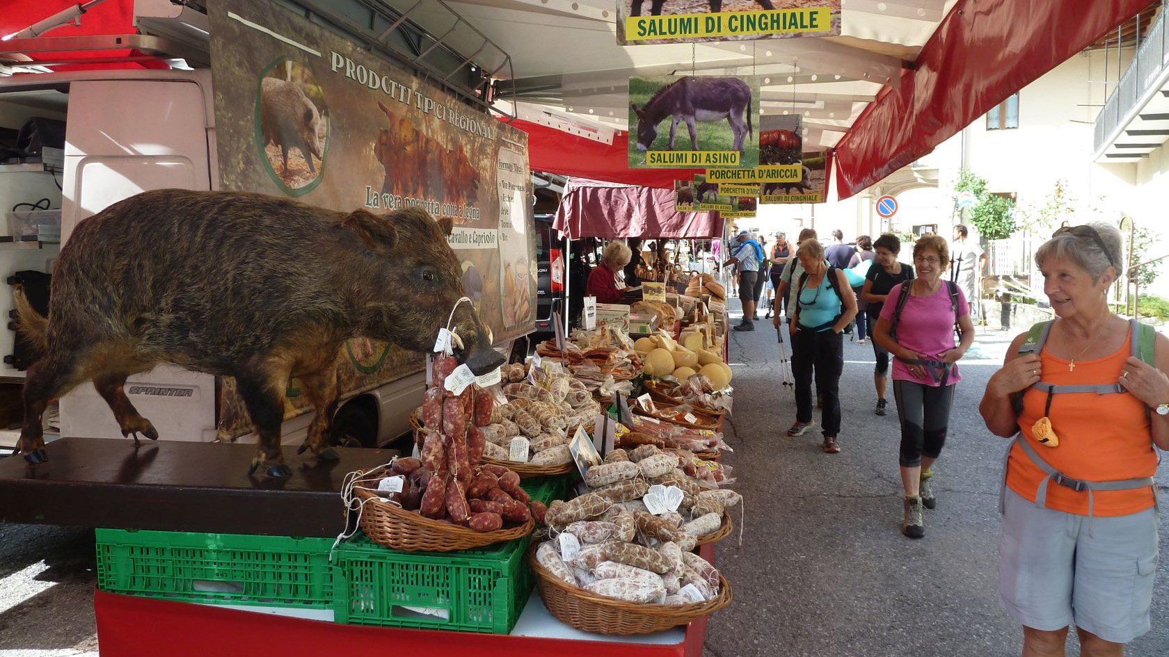 Tief unter uns glitzert das grünblaue Meer. Schmale Bergpfade und Feldwege führen in ein kleines Bergdorf. Günther hat in der Trattoria da Gino ein zünftiges und typisches Mittagessen bestellt. Vom Panorama der Berge umringt zergeht das Essen auf der Zunge.